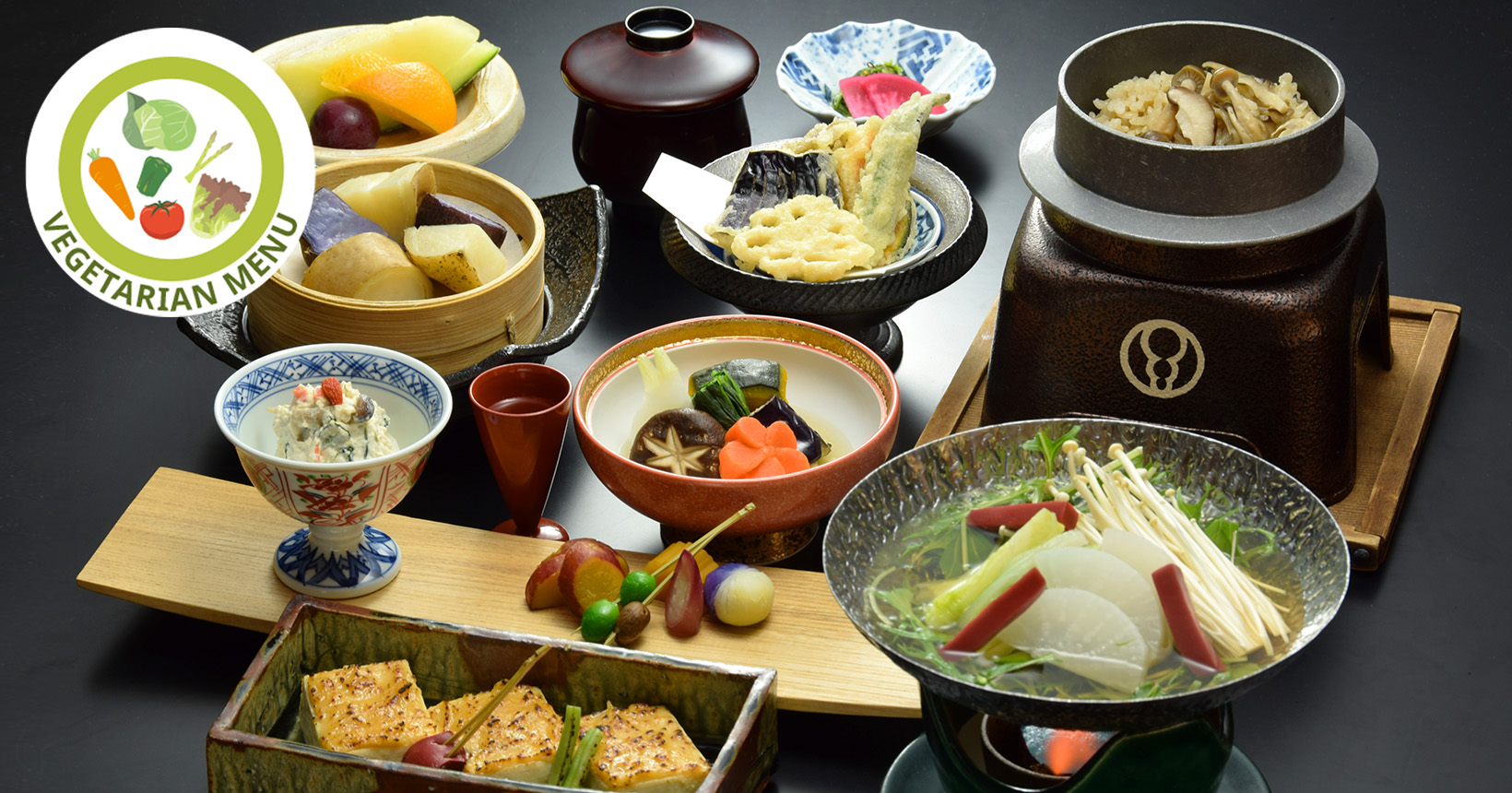 ベジタリアン対応の豆腐・野菜・きのこ等を使用した和食膳をご提供可能です。チェックイン日の3日前迄にお知らせください。