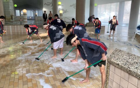 登別温泉の象徴である地獄谷をウォールデザインに取り入れ、お湯と共に歩む歴史を