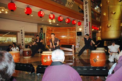 そうそう!当館ではお盆期間の8月13日(水)~15日(金)の3日間、お盆特別イベント「北海いでゆ太鼓」の太鼓ショーが開催されます☆本館の大金棒前にて、お時間は夜20:35からです^^ オリンピックもいいですが、ご来館のお客様は是非是非♪太鼓ショーも見にご来場くださいませ(^_^)/