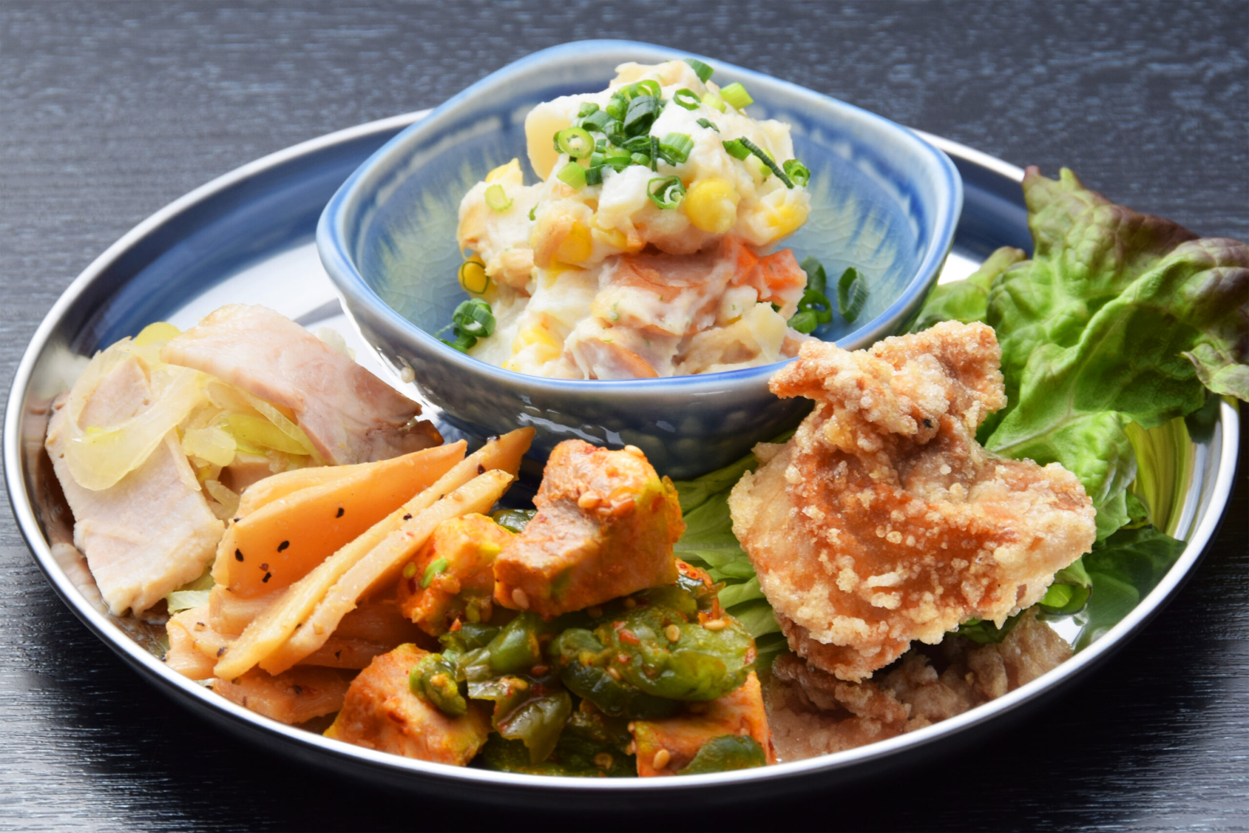 ポテトサラダ・から揚げ・肉かっぱを盛り合わせた 「お酒の極楽セット」 など、