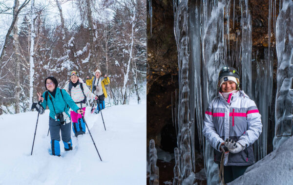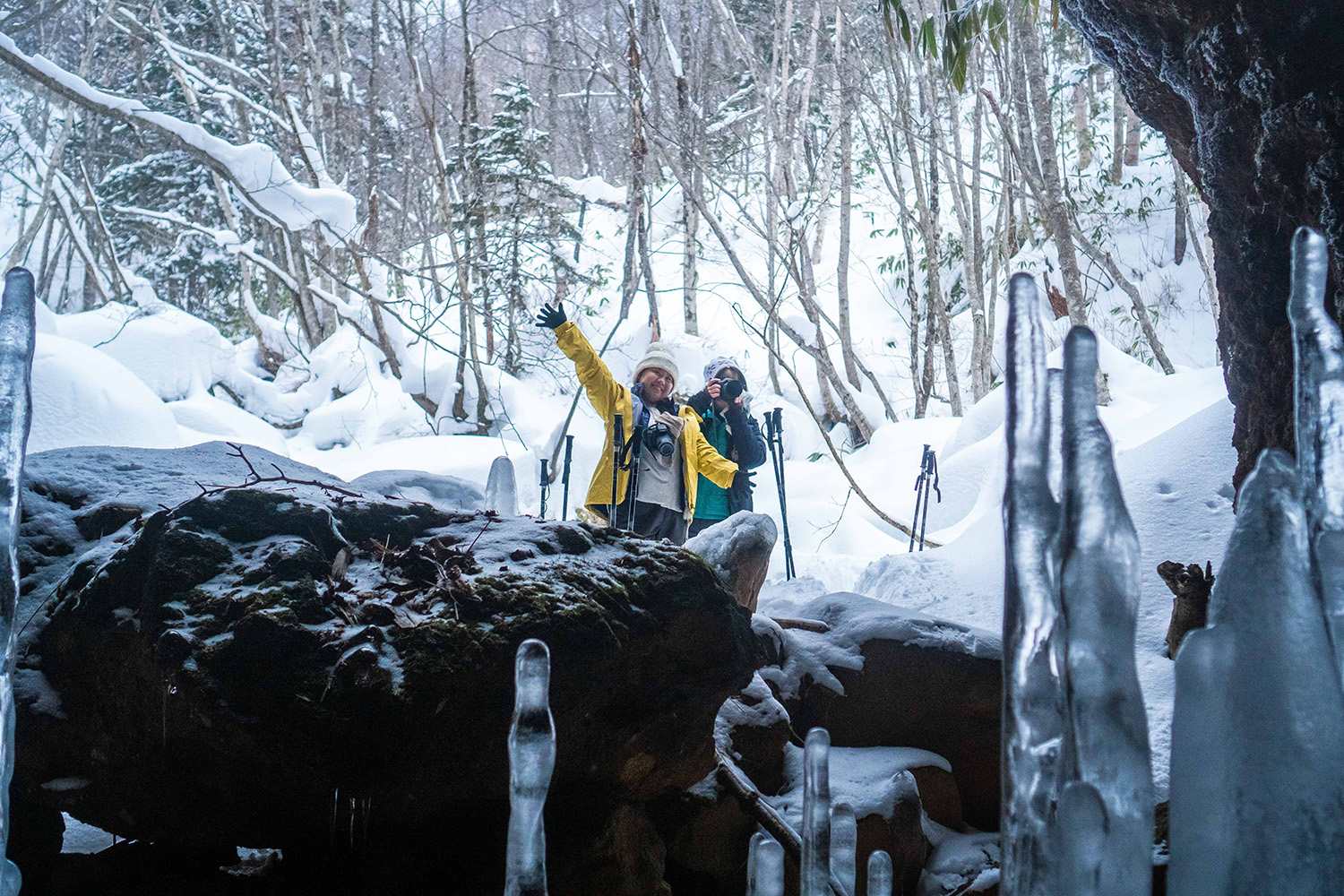 スノーシューで原生林を歩きながら、北海道三大氷筍のひとつを間近に眺める銀世界のツアーで心に残る特別な体験を。