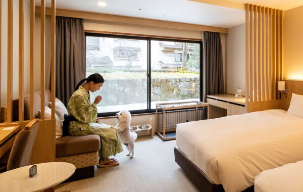 庭園が見えるお部屋でわんちゃんとゆっくり過ごす