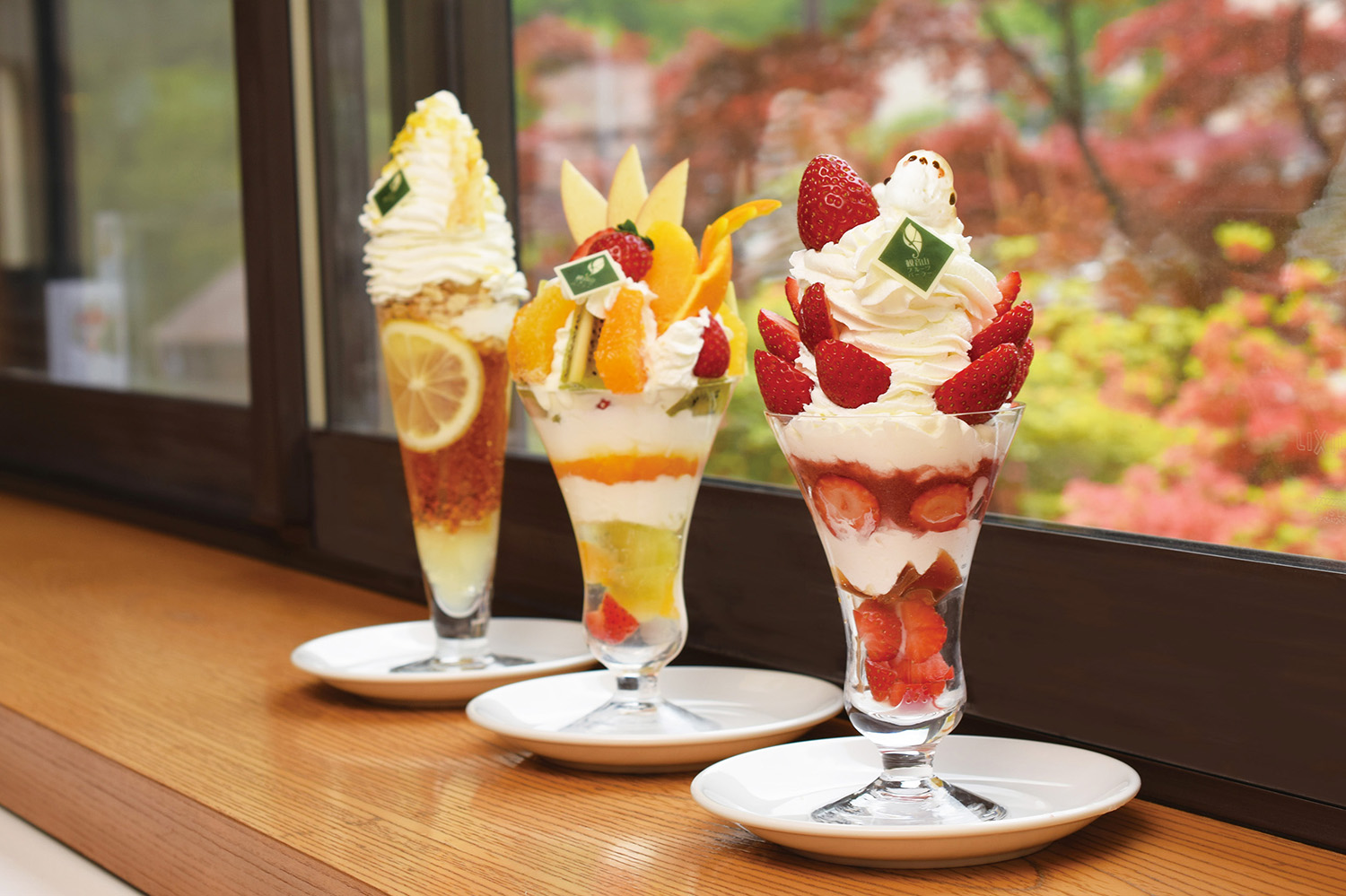 旬の果物を贅沢に使ったフルーツパフェのほか、