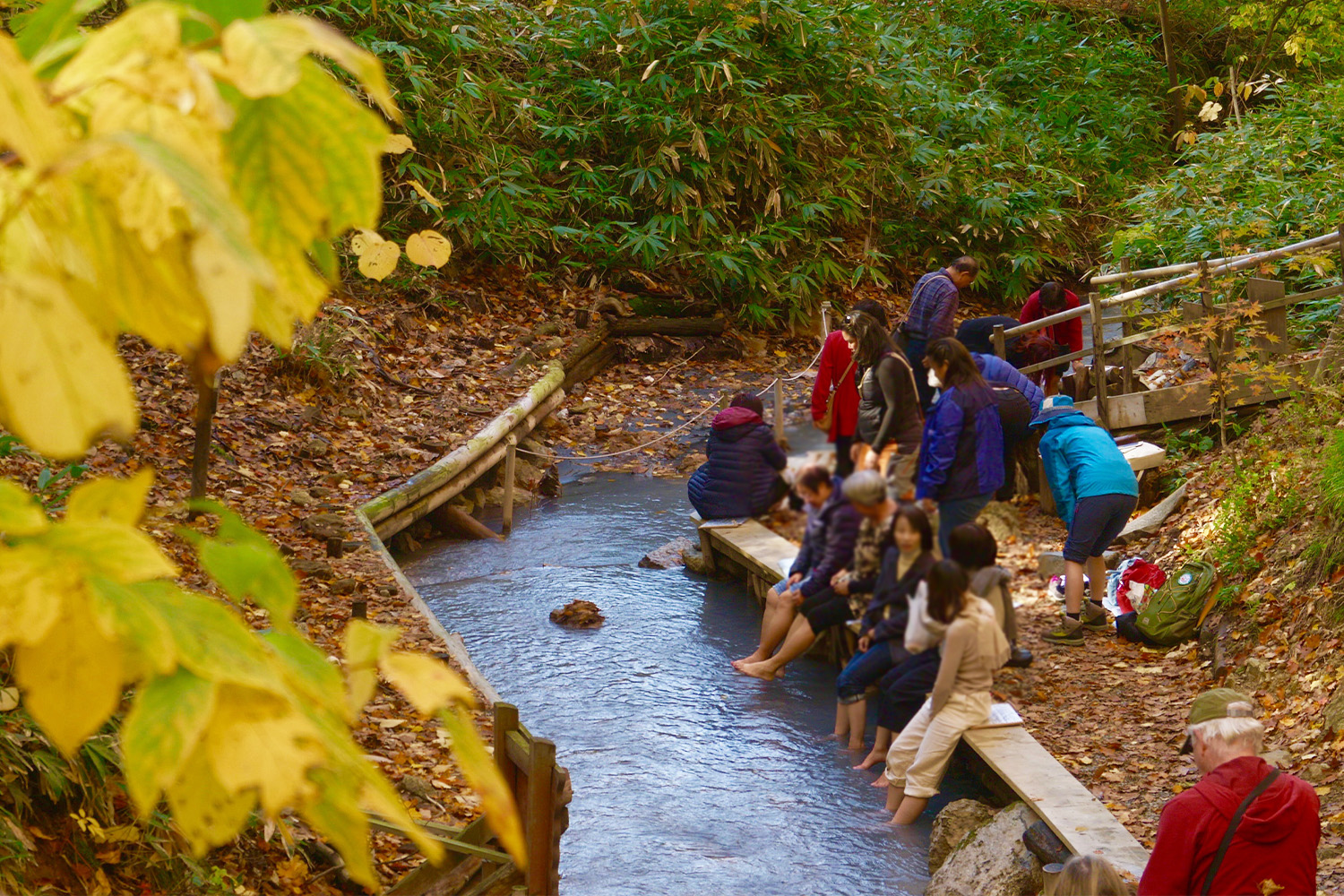お子様と一緒に楽しめるコースで、祖父母は足湯散策へ。