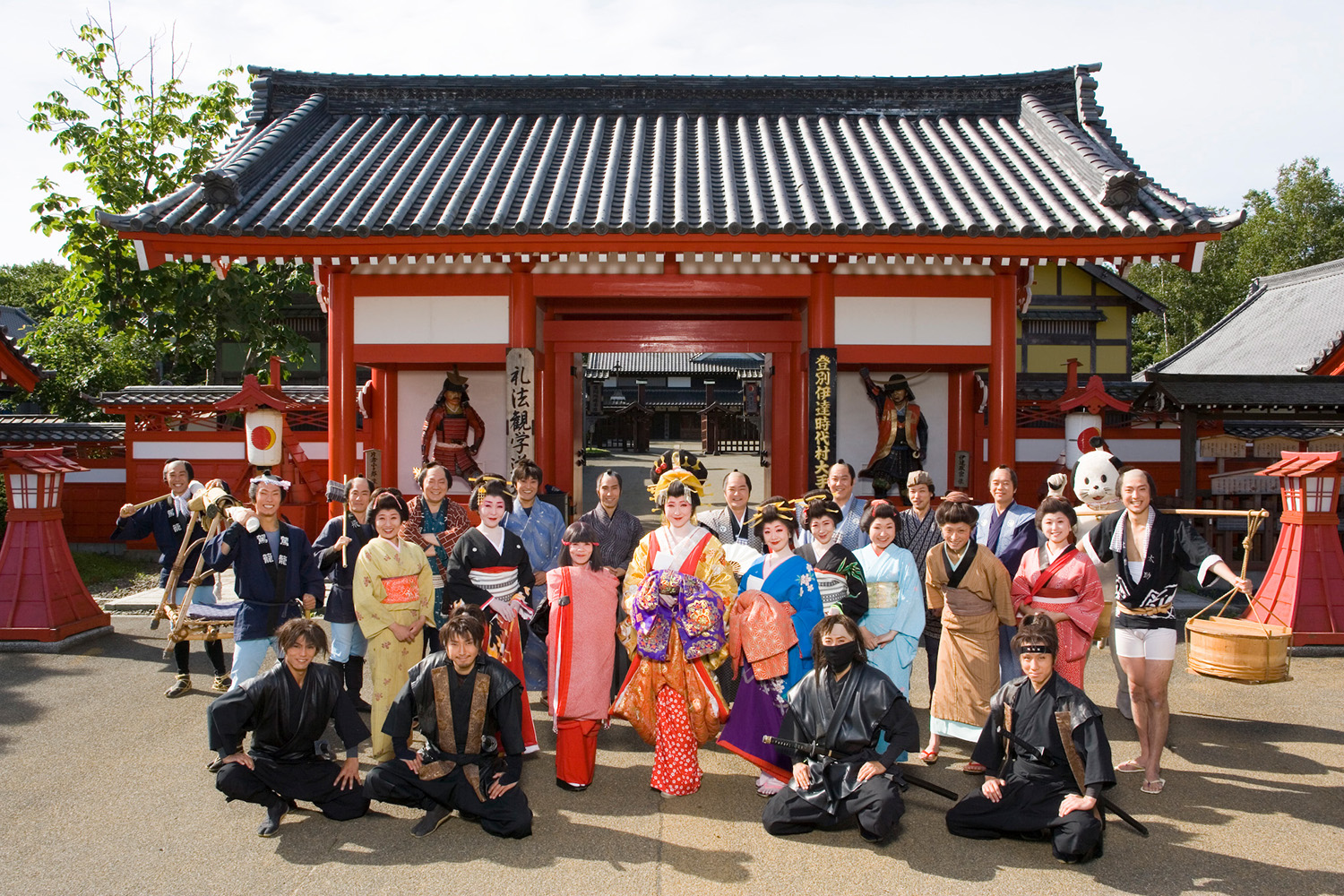街並みや文化をまるごと再現したカルチャーパークで、忍者ショーや時代劇コメディを毎日上演。