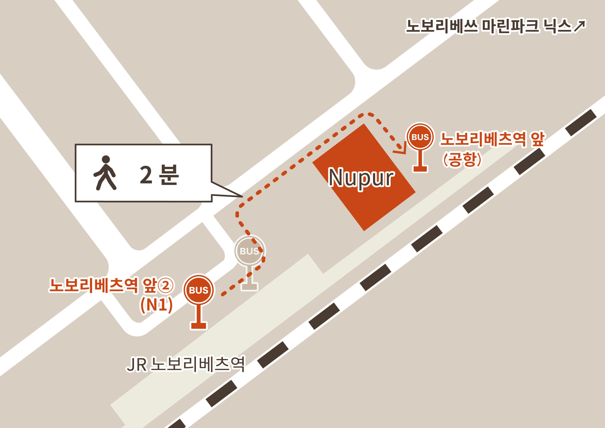 | 소요시간 | “노보리베츠” 정류장 →(버스로 15분) →”노보리베츠역 앞②” 정류장 →(도보 2분) →”노보리베츠역 앞(공항)” 정류장 →(버스로 1시간) →하야부사 호 |