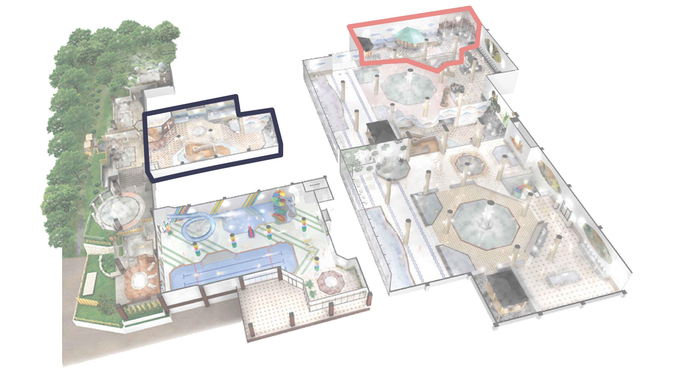 본관에는 노천탕, 건강탕, 온수 풀을 갖춘 1500평 규모의 대욕장 전용 동이 있습니다. 노보리베쓰 온천 최대 5가지 온천수를 갖추고 있으며, 남녀 합계 35개의 욕조를 준비했습니다. 다양한 욕조에서 원하는 온도와 형태, 그리고 변화하는 경치를 즐기실 수 있습니다. 하루 종일 있어도 지루하지 않고, 진정한 온천 천국을 만끽하실 수 있습니다.