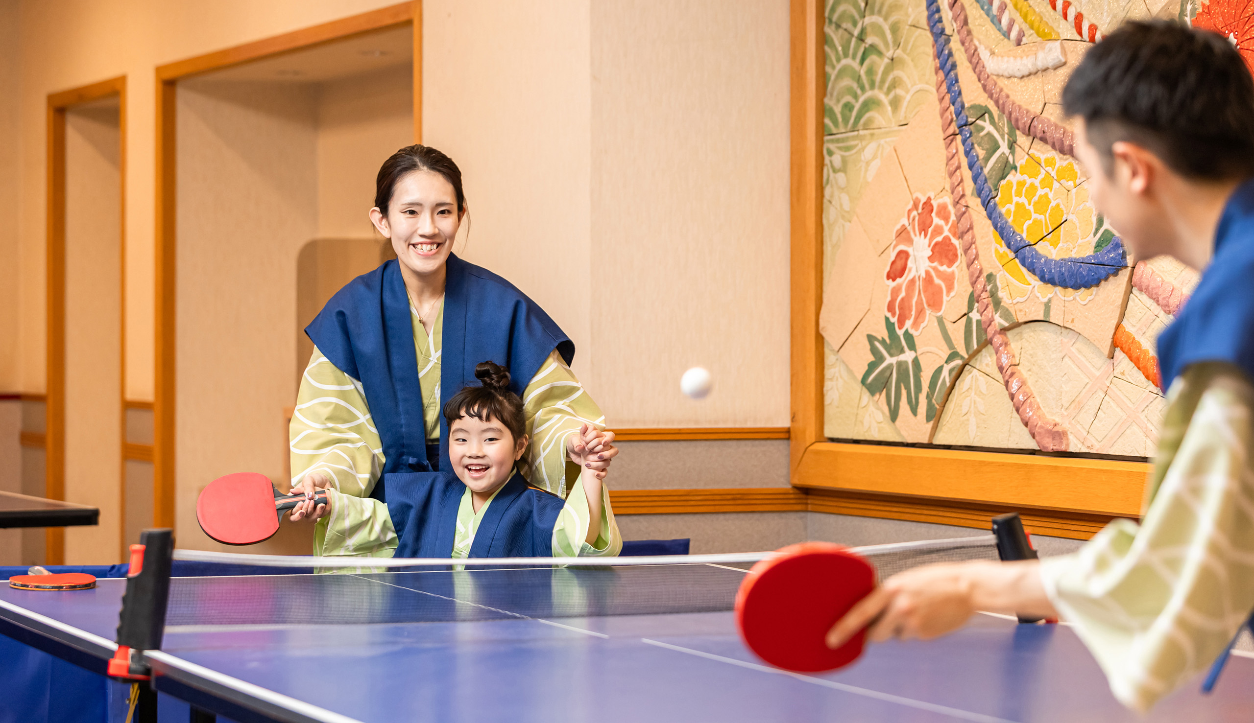 说到温泉嘛,当然得打乒乓球啦!(日本人的一种经典印象)无论大人还是孩子,请大家一起参与这场精彩激烈的战斗吧。球拍和球仅限于使用时间内出租。(30分钟550日元(含税)~)