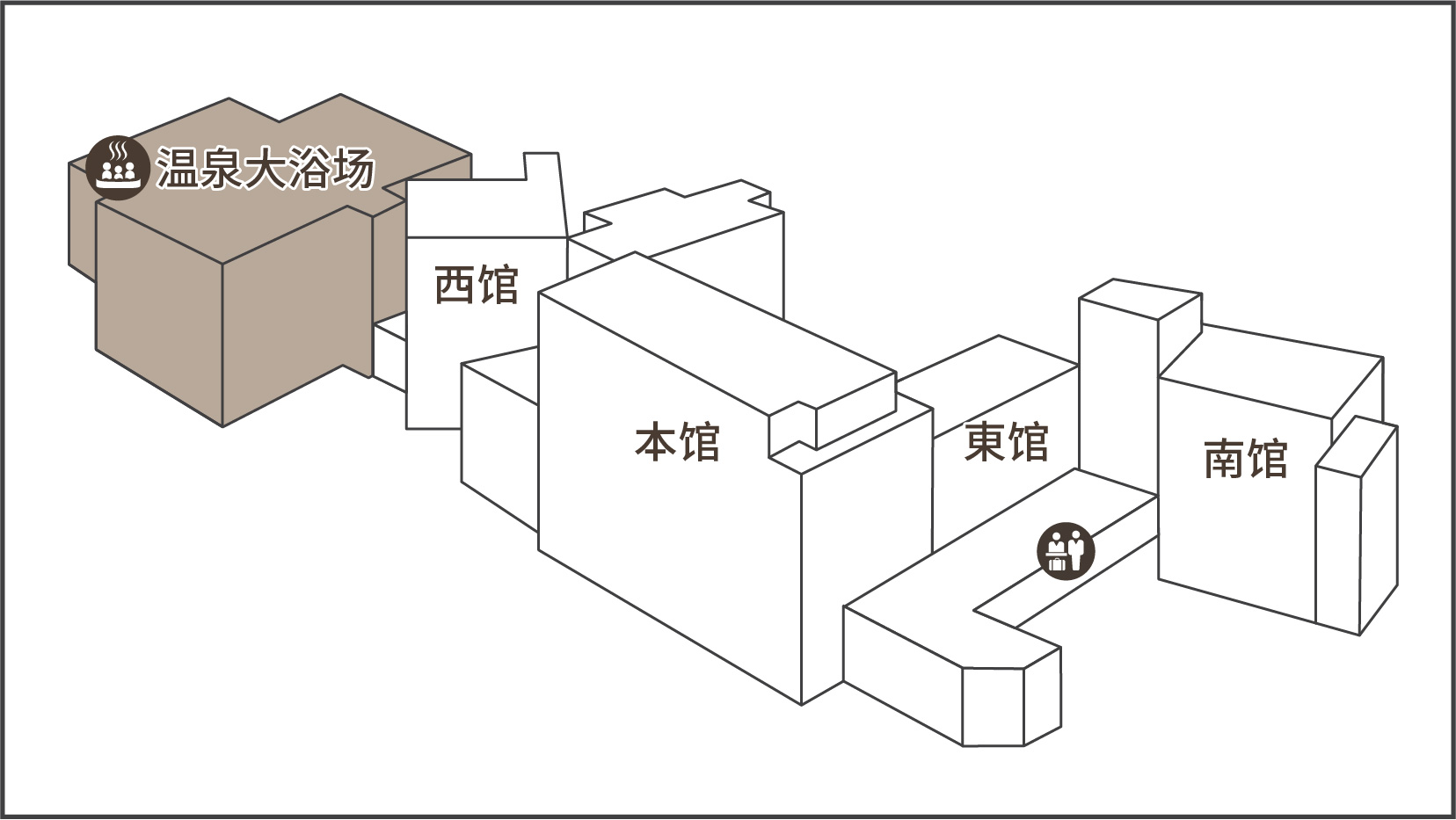 第一泷本馆的温泉,占地4950平方米的独立建筑,以丰富的泉水量吸引来访者。三个宽敞的空间配备多样的浴池,让您度过身心放松的奢华时光。源泉放流的温泉,疗愈每日疲劳,带来至福体验。