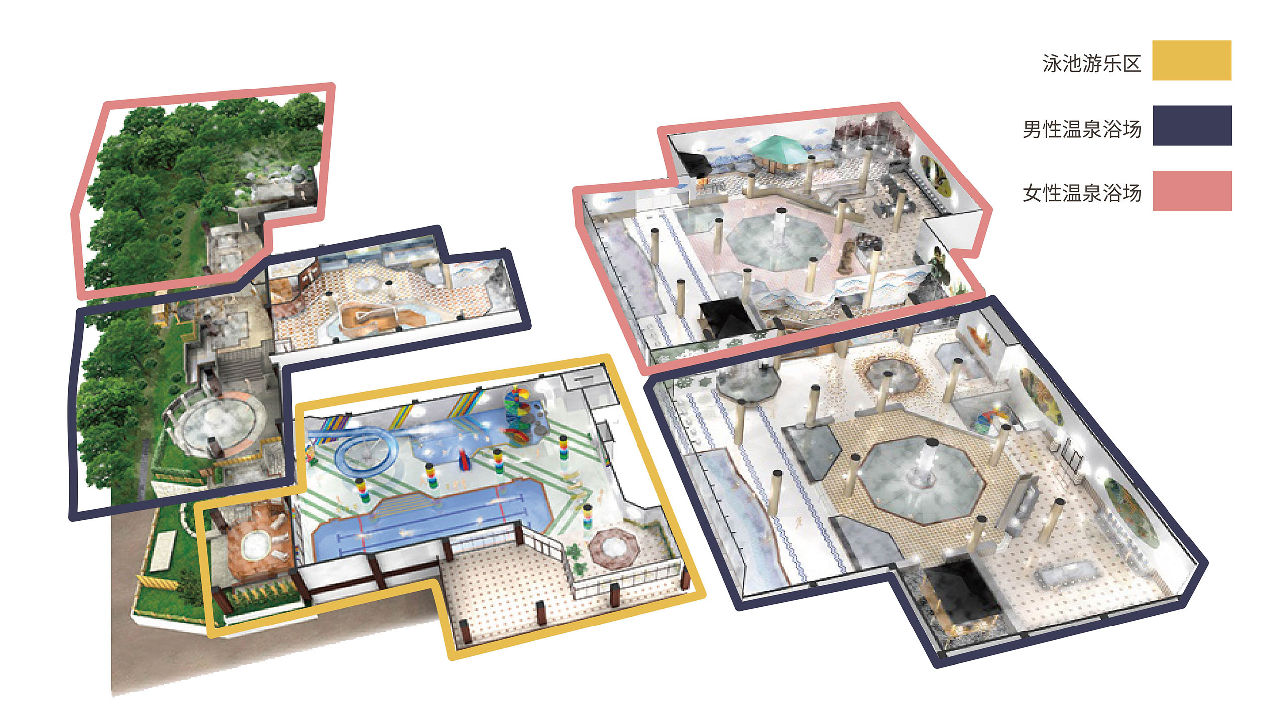 泉量充沛、气势非凡。三大区域共占地约4,950平方米,是登别温泉中首屈一指的宽广温泉空间。